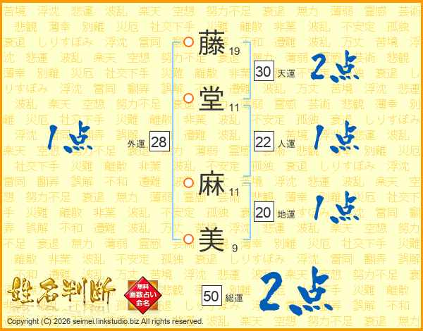 藤堂麻美さんの運勢 姓名判断 名前の画数から無料で
